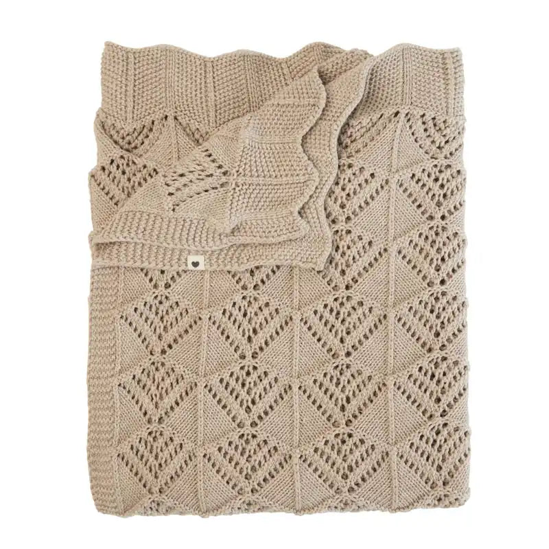 BIBS Strikket tæppe er lavet af 100% økologisk OEKO-TEX®-certificeret bomuld. Det er hyggeligt og alsidigt og kan bruges både i tremmesengen, klapvognen eller på gulvet som legetæppe.