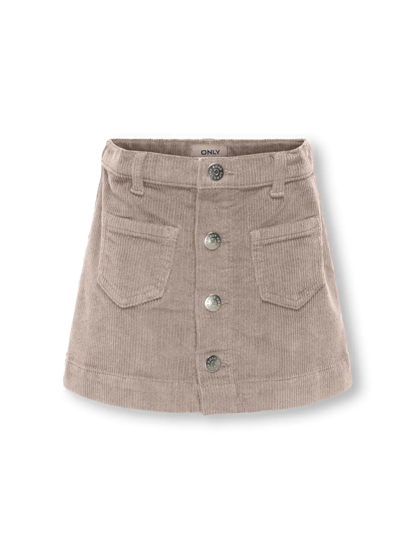 Denne nederdel er defineret af sin fløjlsstruktur, der giver en blanding af klassisk stil og komfortabelt slid. Den har en struktureret linning med bæltestropper, funktionelle forlommer og en knaplukning foran.