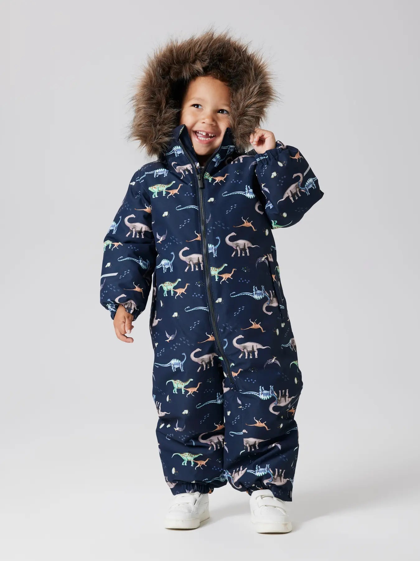 Opdag vores charmerende Name It Dark Sapphire Dino Earth Nmmsnow10 Dragt Aop Fo Noos flyverdragt, perfekt til dit barns vinterlege! Dragten er fremstillet i holdbare materialer med et livligt dinosaurtema i dybe sapphire-blå nuancer og jordfarver. Den er designet til at sikre en behagelig pasform og nem bevægelighed, ideel for aktive børn. Med sine praktiske funktioner som vandafvisende overflade og isolerende for, holder den dit barn varmt og tørt uanset vejret. Denne dragt er både nem at tage af og på og nem at vedligeholde, hvilket gør den til et uundværligt stykke vintertøj i barnets garderobe. Oplev hvordan den kombinerer funktionalitet med stilfuldt design! Åndbarhed: 4,000g/m2/24h Lukning: Lynlås lukning Aftagelig hætte: Ja Fyld: Høj isolering For: Fleecefor i kroppen for varme og en blød fornemmelse Materialer: 100% Polyester Materialer og pleje: Vask med lignende farver. Maks. krympning 5% Sømme: Fuldt tapede sømme for en komplet vandtæt beskyttelse Vaskeanvisninger: Maksimal vasketemperatur...