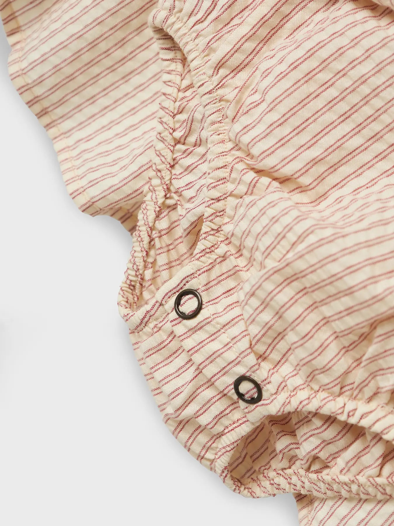 Fineste baby bodykjole fra Lil' Atelier i blødt stof med de fineste detaljer som dobbelt krave og knapper. Kjolen er stribet og er hvid og rosaHovedstof: 100% Økologisk bomuld