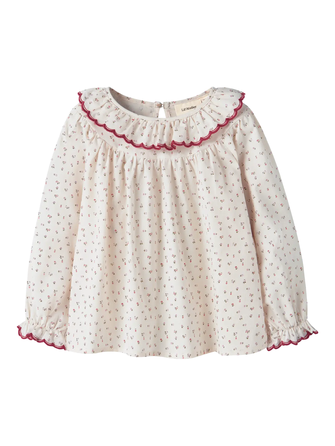 Lil’ Atelier Rasia loose Shirt er en super fin og yndig skjortebluse, der kan bruges til både hverdag og fest. det smukkeste allover print med små blomster og den finest krave og ærmer med rød kant Skjorten er lavet af: 100% Økologisk bomuld. Lil’...